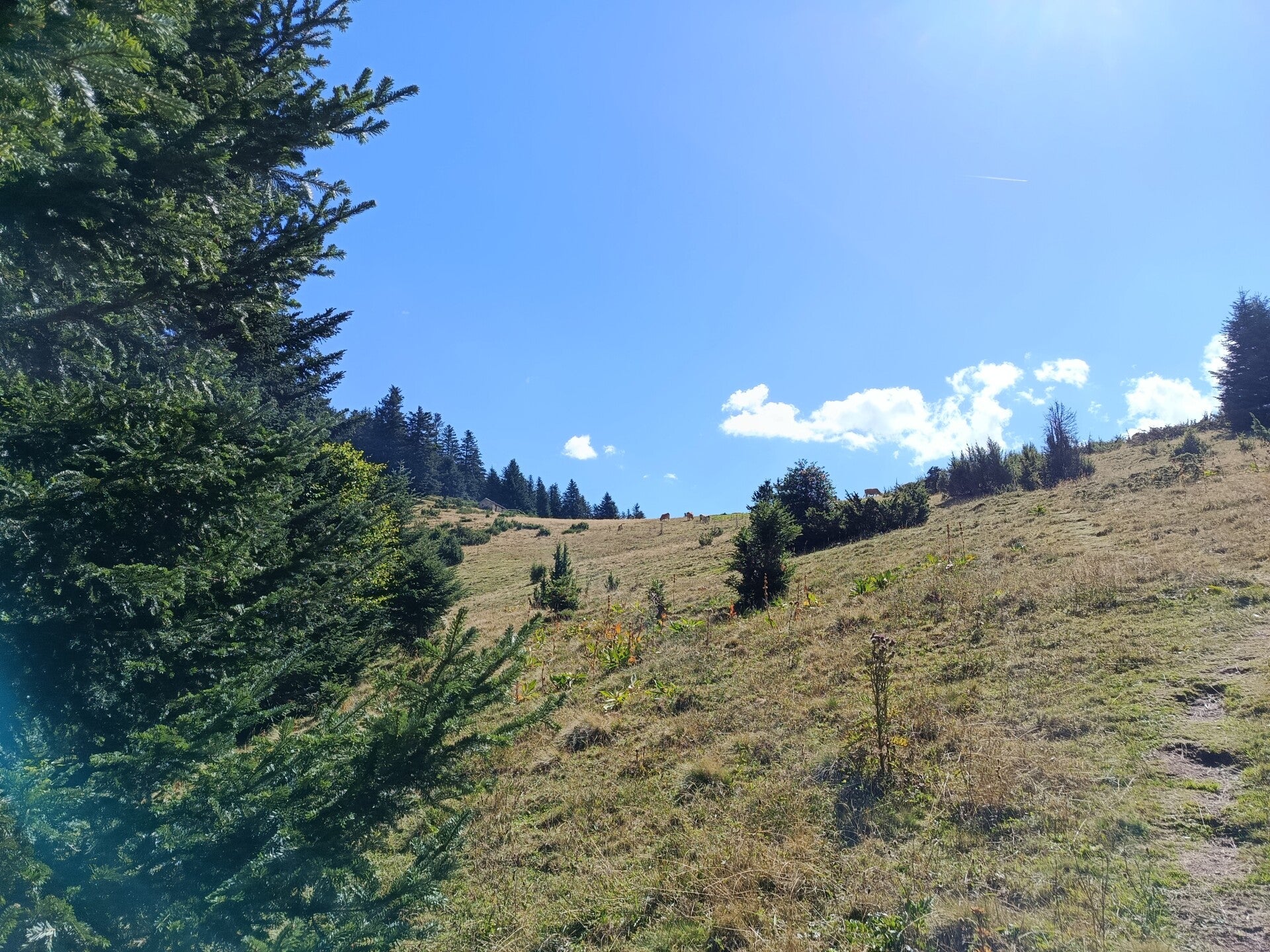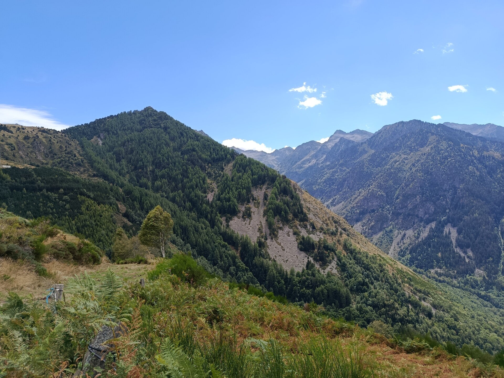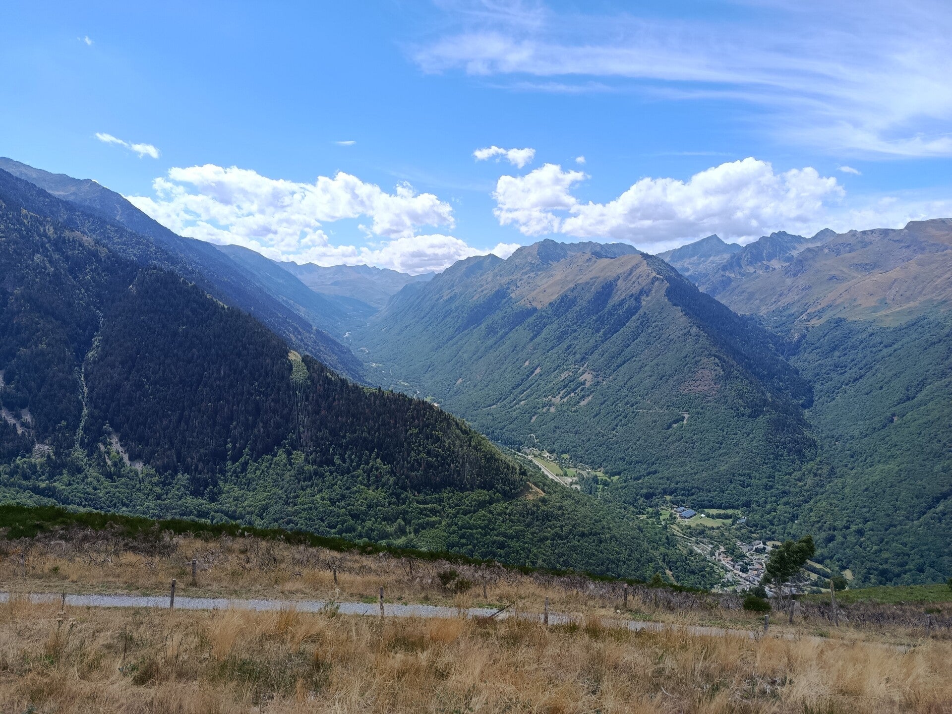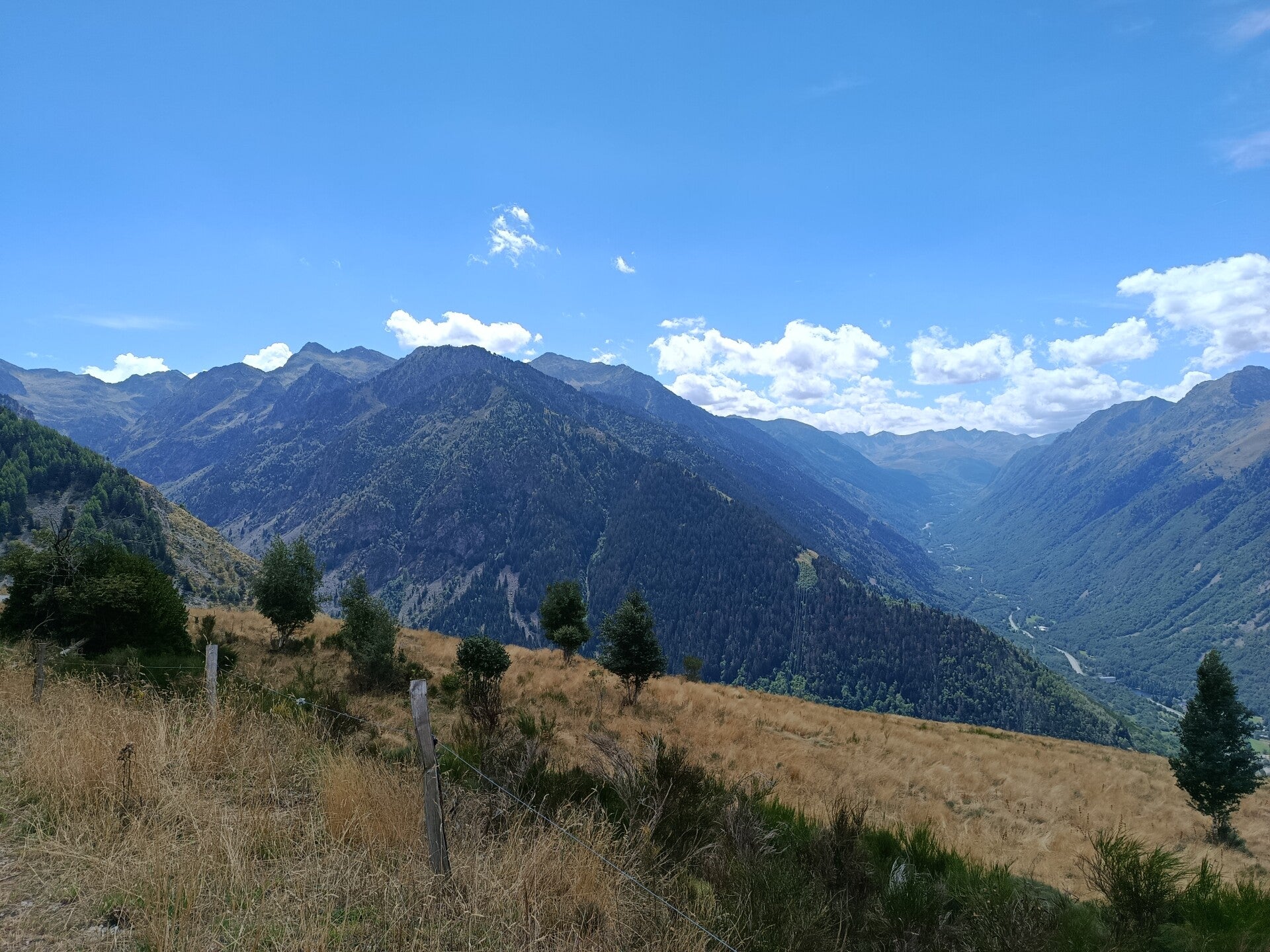 Balade sur quatre versants de montagne, une traversée d'un troupeau de vache, une superbe vue à chaque coin, vallée d'Orlu, vallée d'Ax, pas de pluie, une pause aux sources chaude pour les pieds (après 12 Km et plus de 700 D+) et finir au resto La Gare des Vals avec apéro et un super repas (désolé mais là pas de photos, trop occupé par la qualité du cadre, des propriétaires et du repas). Une heure d'avance sur l'horaire prévue, rando qui malgres tout, se fais bien.
